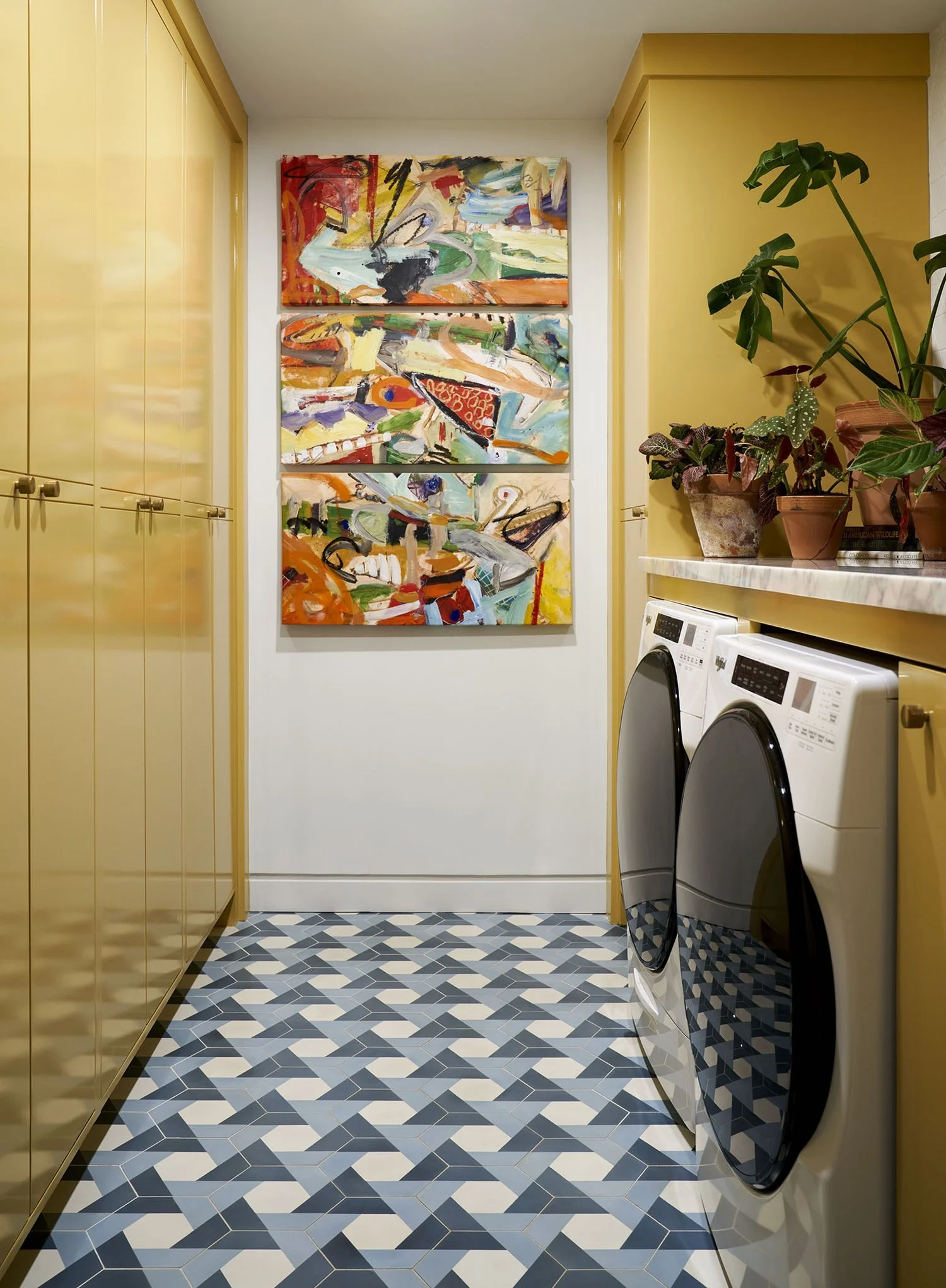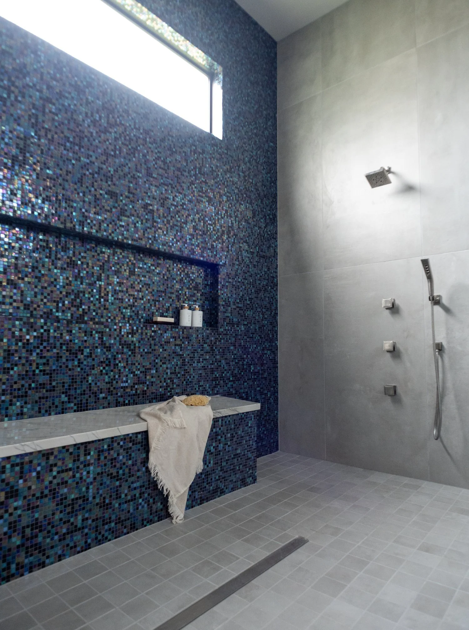 Stone is no longer the only material for tile. In the bold laundry room above, I used concrete tile. And glass tile is what gives the bathroom above its unique sparkle. Each material brings something different to the style of tile.